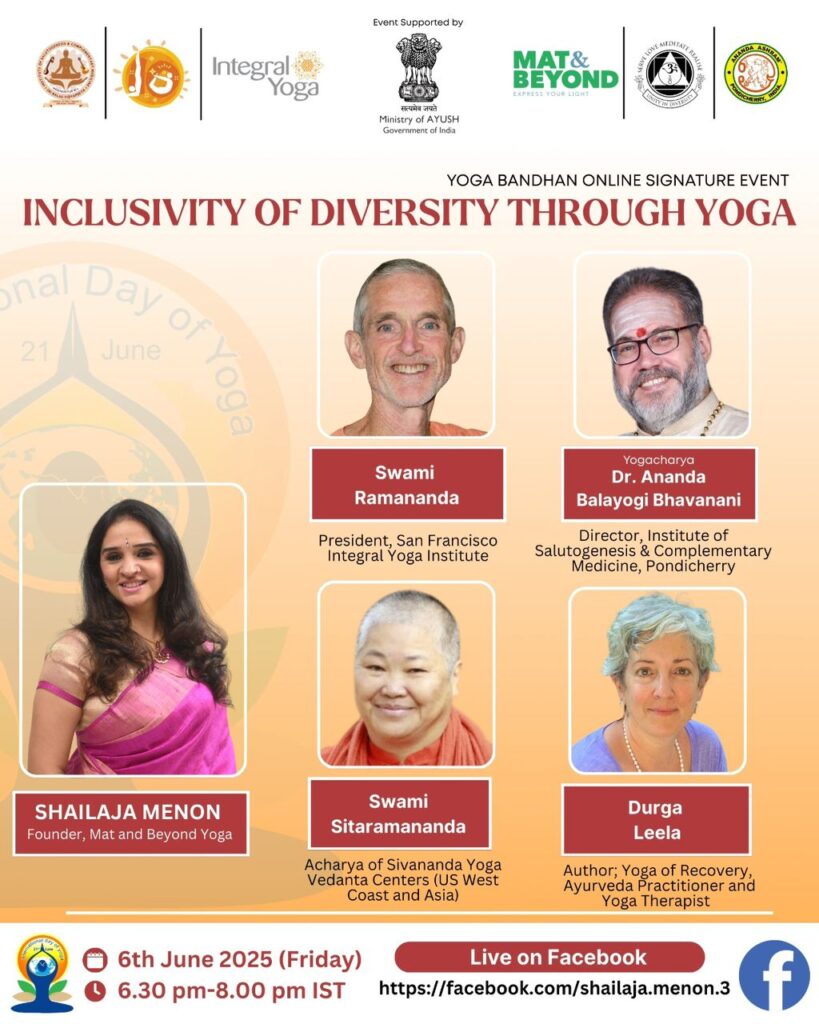 In conjunction with International Yoga Day 2025 – I am honored to be part of a panel for a a live event on facebook on June 6th Friday, with Swami Sitaramananda, Swami Ramananda, Ananda Balayogi Bhavanani, and Shailaja Menon.